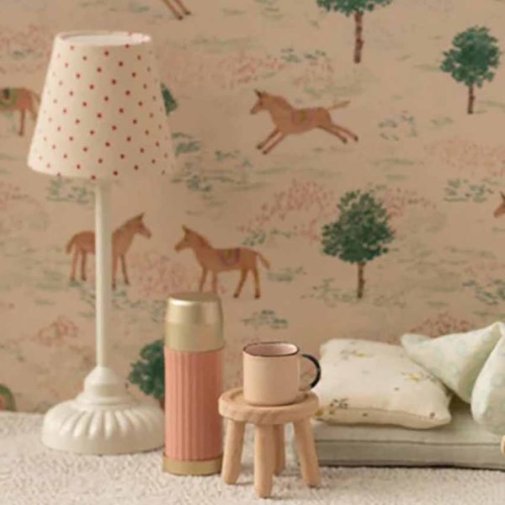 The beautiful Maileg vintage floor lamp is a must-have. The lamp will light up the room with a soft tone - remember to turn off the light when our friends go to bed. The product comes without battery. You can add a coin cell battery (CR2032).