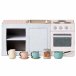 The small kitchen counter comes with 2 cups and 2 plates, a pot and a pitcher and a small can. The small sink is made of metal to look as real as possible. It fits perfectly into the kitchen in the SuitCasa mouse house.