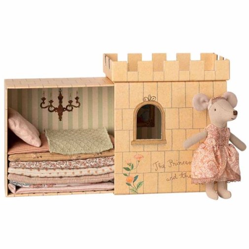 Once upon a time… Playset inspired by the famous fairy tale Princess on the pea. This set includes a paper castle with mattresses, a pea and a princess mouse.