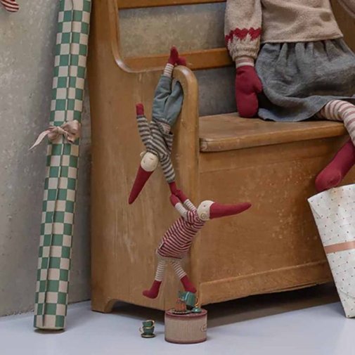 Mailegs pixy collection contains many different styles - all dressed up in nice Christmas clothes made of exclusive materials. They are adorable and can be mixed and matched across sizes and collections. Size 1 has magnet in hands and left foot.