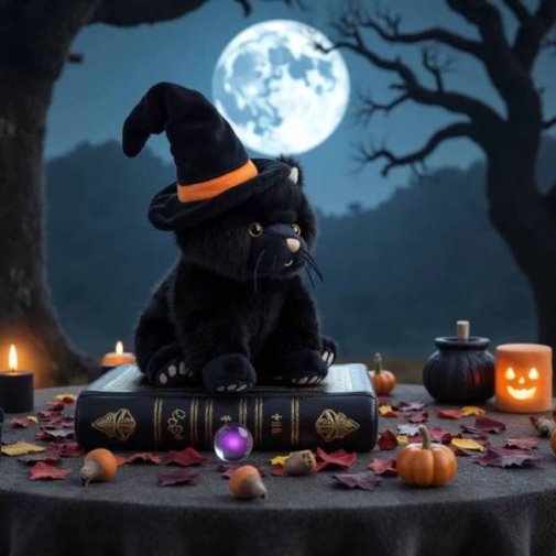 Adorable Spooky Bambo cat. Size 25 cm and Bambo cat is black with cute hat.